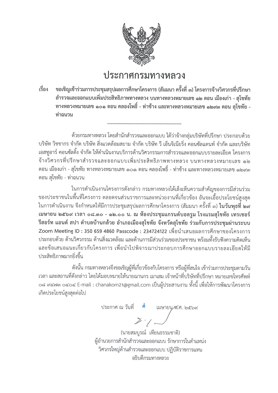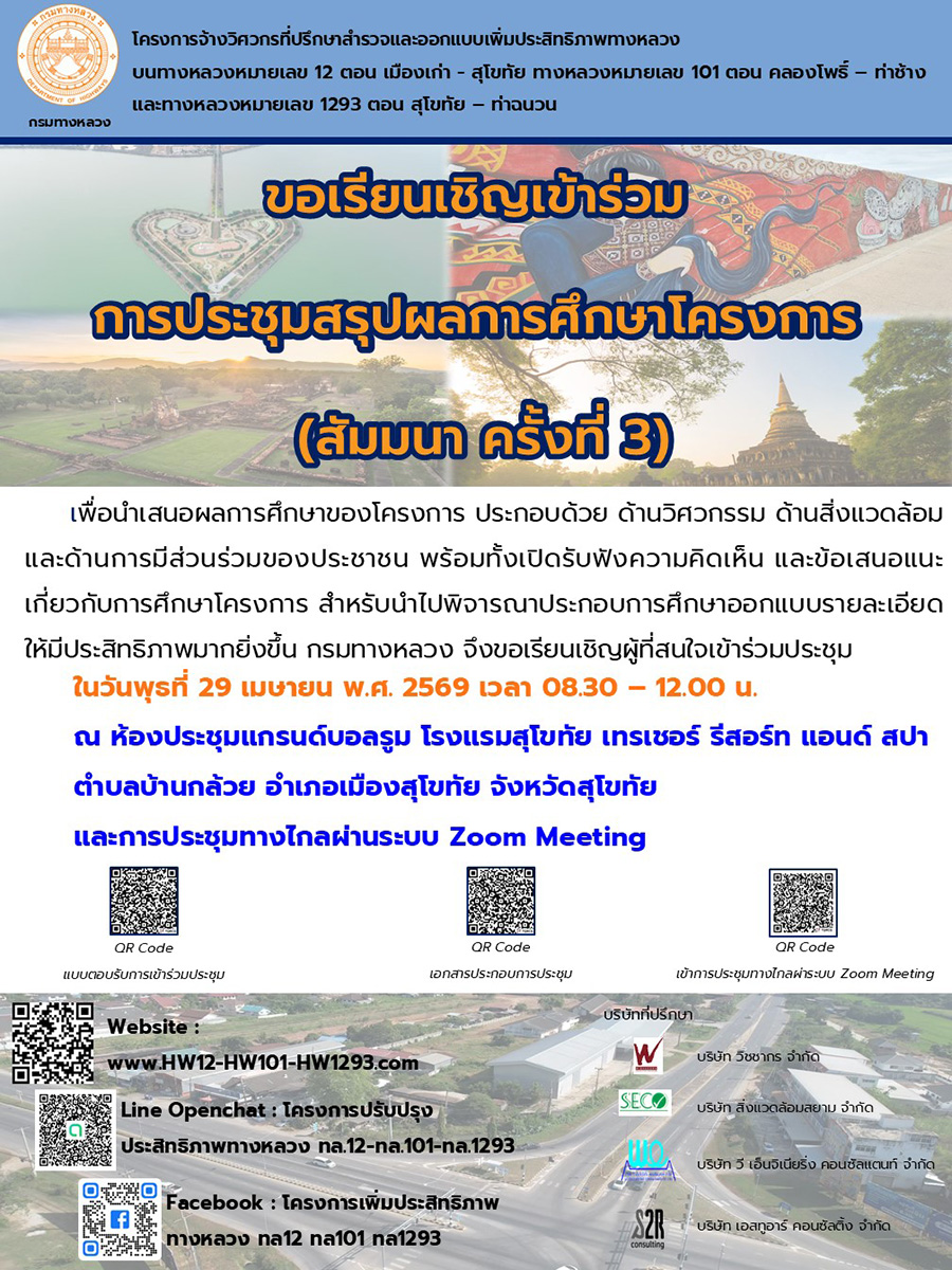 โครงการจ้างวิศวกรที่ปรึกษาสำรวจและออกแบบเพิ่มประสิทธิภาพทางหลวงบนทางหลวงหมายเลข 12 ตอน เมืองเก่า - สุโขทัย ทางหลวงหมายเลข 101 ตอน คลองโพธิ์ ท่าช้างและทางหลวงหมายเลข 1293 ตอน สุโขทัย ท่าฉนวน
